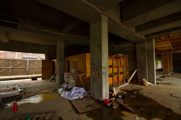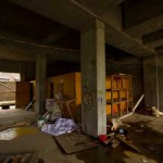 Adventure: This place just attracts people, and the instant someone finally cut a hole in the fence and ripped the lock off the back gate, the people flooded in. Me and Sleazy arrive upon the scene and within 2 minutes find a Mexican sleeping in one of the man plywood construction rooms on ground level. Unimpressed with his insufficient stock of alcohol, we make our way to the next set of construction rooms and find blueprints scattered in the wind. Anything of actual value has already been looted, though I can’t say I was expecting to find much here. We head upstairs and find the open exposed mess of the upper floors to be a curious tower over the area. We spot a couple coming through the hole in the fence and wonder if they’ll bother coming upstairs. Eventually we move further up, until we reach the upper level, where a Raccoon curiously eyes us from the top of the stairs. Cute but troublesome, we avoid the small beast and head back down to notGreet that couple that came in. We lurk around and manage to give them the piss shivers without even trying. They leave, and we lurk by the entrance in the dark as the male comes back in, then leaves when we hiss at him. Loser. Who’s afraid of the dark? We eventually leave, searching for better loot, more alcohol, and more lame people to menace. Because when the abandonment sucks, there’s always idiots to fuck with.