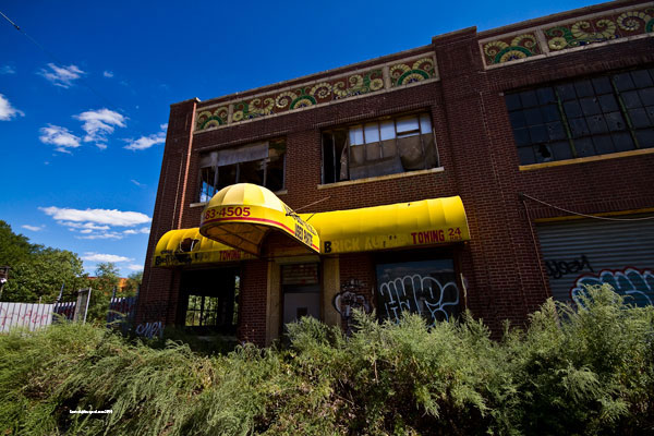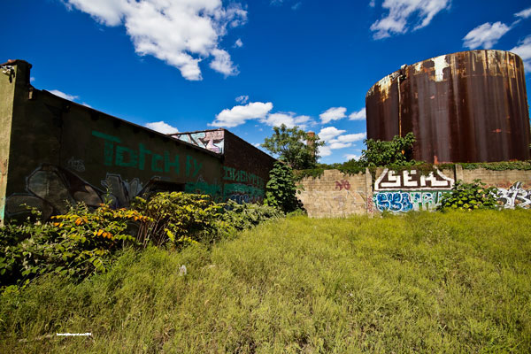 Lately, I’ve been striving to include some more historic and adventural context to everything that gets posted on this site. This location though, is a clear exception. There’s little known about it, and not a thread of information to use to research it. The front of the building appears to have been an auto garage just before it’s untimely death. The rear contained massive fuel tanks, suggesting a former life as a small fuel depo.