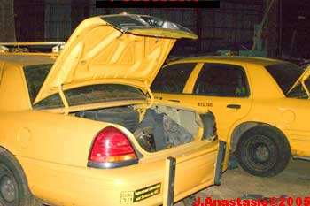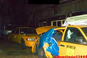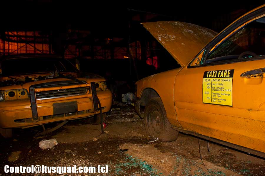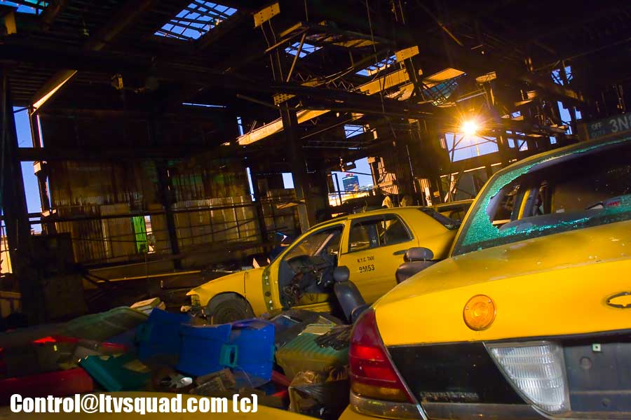 Today though, the space has been taken over by a taxi repair shop. They leave their junk, stripped of parts taxis in this warehouse while they keep mechanics on duty in another building maintaining the rest of the fleet. You see, NYC taxi’s are owned by many different companies, just aboutt all of whom maintain a large fleet of cabs with several crashed or worn out cabs kept at their base as a part supply for those that they keep running. Taxi garages have always found the LIC area home, right along side the manufacturing shops and steel fabrication shops, thus the progression of this lcoation, from steel to taxi, keeps the location ‘in the LIC family’. To me, this is much better than had the place become condos…