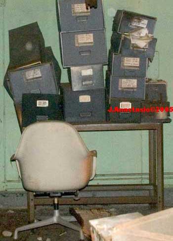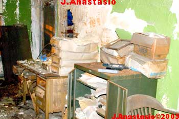 Besides, there are still plenty of remains from the old steel shop. It is as if they locked the door and walked away. An ancient truck sits rusting in the back of the warehouse, along with piles of bricks and debris. Towards the front are stairs up to a second level, where the offices once were. The floors have sagged and appear ready for collapse. Nevertheless we carefully made our way in to the corner office, where piles of paperwork and unopened mail sad on old wooden desks. There was no graffiti, and no signs that anyone had been up here in at least 20 years.