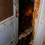 Greenpoint terminal was a big enough set of buildings that you could go over and over and over and still find new things. On this night we accessed a room that looked as though a squatter was living in it. Upon closer inspection though it appears the room was used as a local hang out for kids growing up in the area in the 1980s, and judging from the style of graffiti, may later have been used by some punk rock squatters.