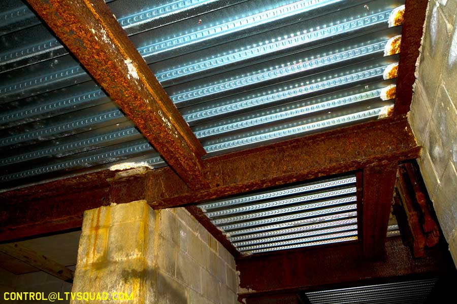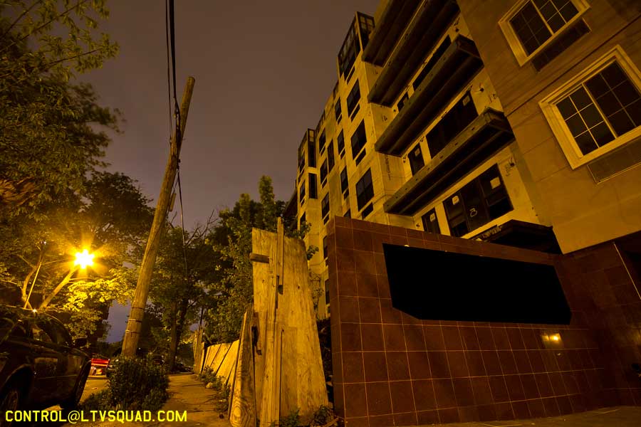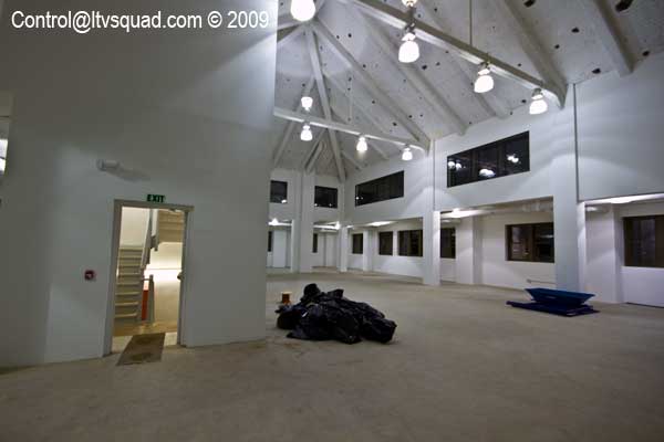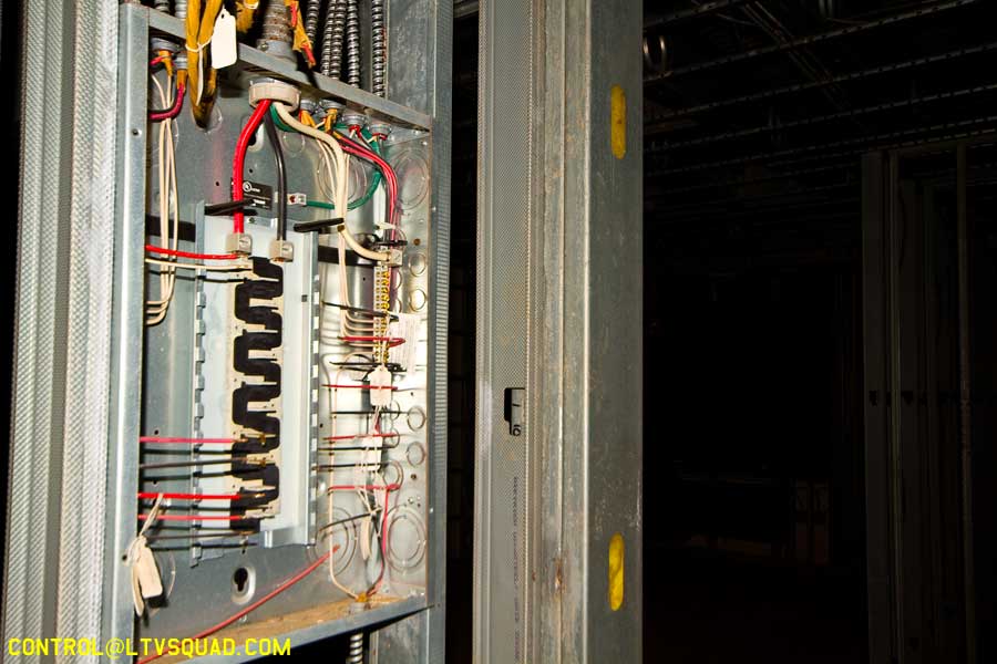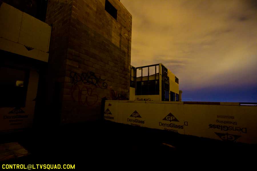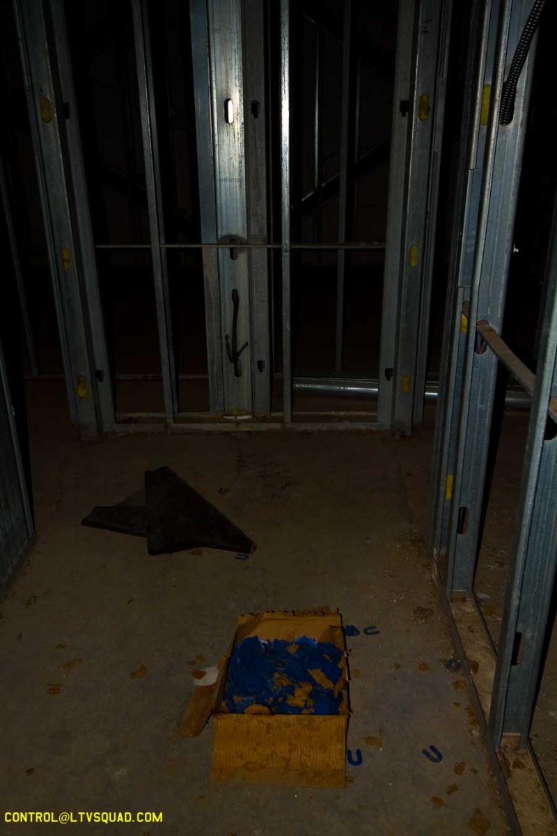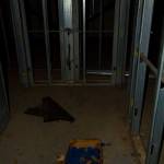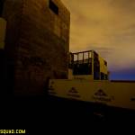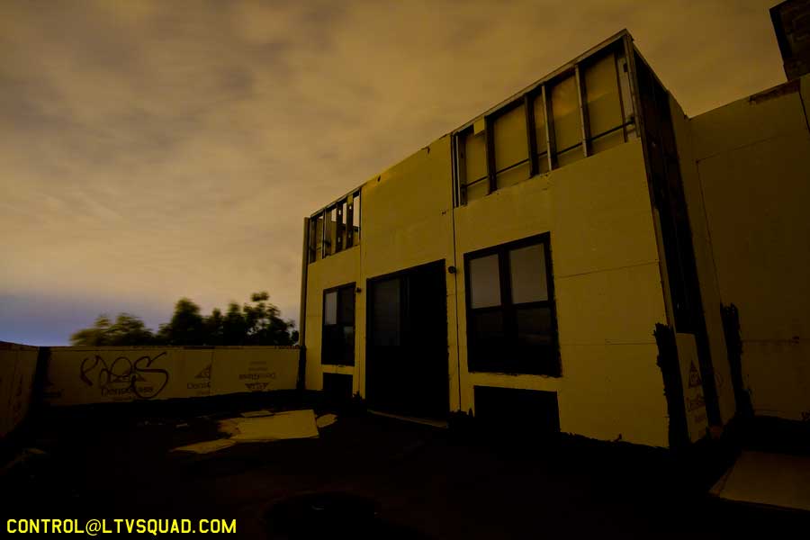 We make our way around and find an entrance right by a security trailer. This security trailer… it bugs me out a bit. I can’t tell if anyone is in it, but I know someone’s in this building we’re heading for. You can just sorta feel that sort of thing sometimes. You can almost smell it…