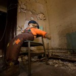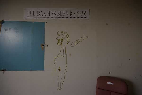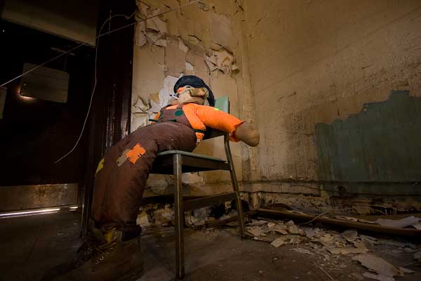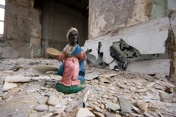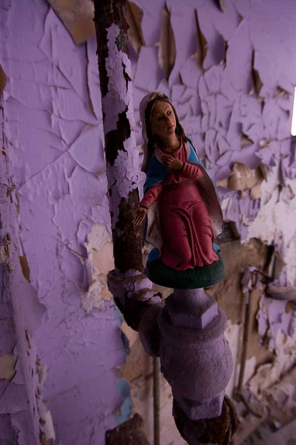 Our scouting didn’t last long. Just to the left of the main entrance stood a bold basement level point of access. With the sun beaming down and general quietness in the air, there seemed to be no reason not to step right in – through the blown out window, onto the table and cinderblocks which formed a very easy set of steps into the basement room. This elaborate access suggested people had been coming in and out of this building for some time – a suspicion that was soon confirmed when a gentile older man appeared out of the pitch blackness of the basement to say hello and immediately make his way outside. His reaction to us was that of one accustomed to meeting strangers here.
