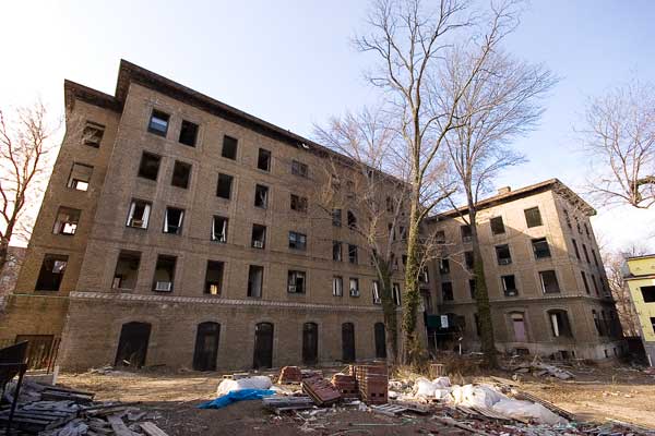 The hospital was shut down in the late 1990s and complaints soon came in to government officials with regard to the building having been left abandoned and accessible. Numerous complaints and attempts to contact the owners over the years seemed to be a failure. The building quickly fell prey to kids with rocks, scrappers and vandals. It was finally put out of its new found misery when it was demolished in 2003. Today, much of the property is now a new apartment building, filled with tiny apartments and jam packed with Hasidic jews.