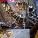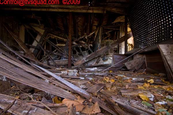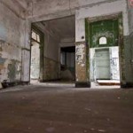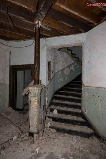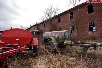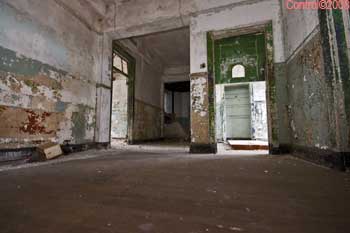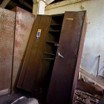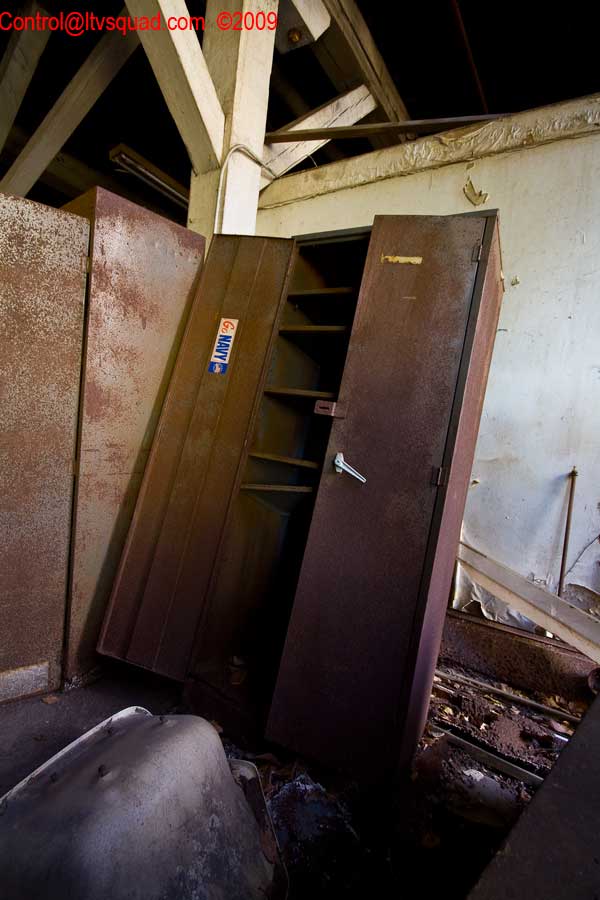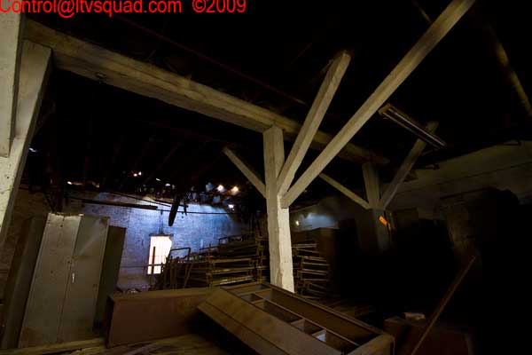 The asbestos abatement work is in full swing, and the trash bags full of the stuff are everywhere in the first section of the building we enter. The complex is really split into 3 practically interconnected buildings. To get to the other two from here, you have to go through the rat-maze area where workers change from their asbestos outfits into normal clothes. This decon area is set up so workers have to shower on the way out. There are no other doors. Everything is sealed up. I’ve seen abatement sites before but nothing this elaborate.