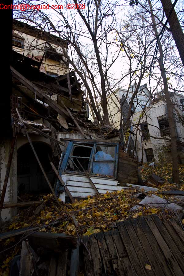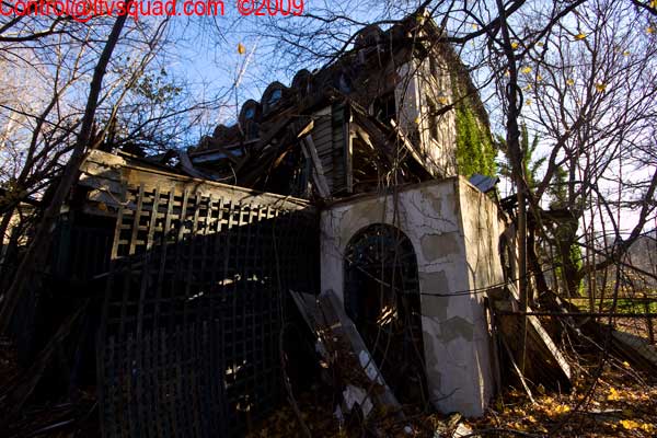 The rest of the building area is all very huge, as expected. It takes a few hours to see everything. But the third building section is already coming down. Huge holes in the walls and ceiling testify this fact. Bobcats on the 6th floor balcony do as well.