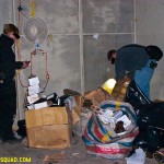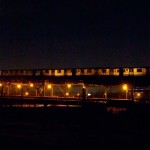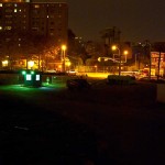 I remember 2004. It was springtime, and A & P were in town once again. These guys are a little more on the daring side, and they hadn’t seen the insanity that was the Greenpoint Terminal Warehouses just yet, so off we went.We started on the south side of the facility and worked our way northward and upward, climbing the most deformed stairs, skywalks and rooftops we could find. Along the way we ran into Ra, the squatter who’s turf these buildings was. We ended the night hanging out with him at the top of a building which had just about entirely collapsed. The only way to get to this spot was to go through a different building and come out on a rusted fire escape to walk into the next door where you could stand and stare down at oblivion itself.