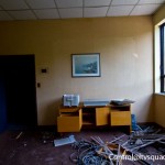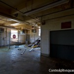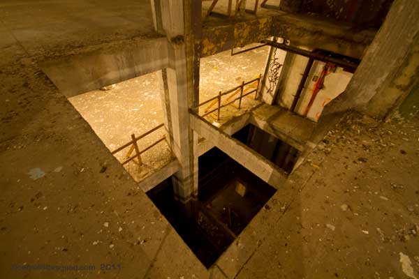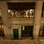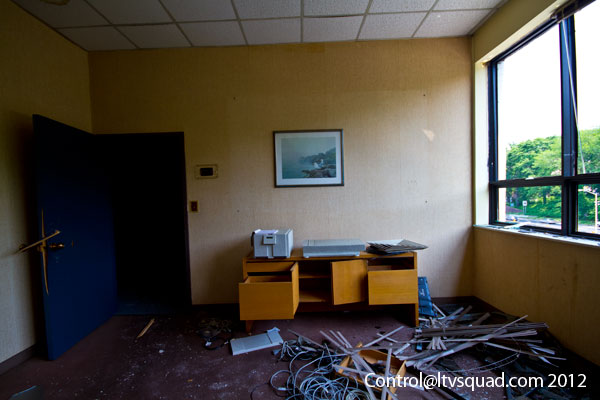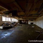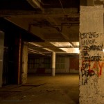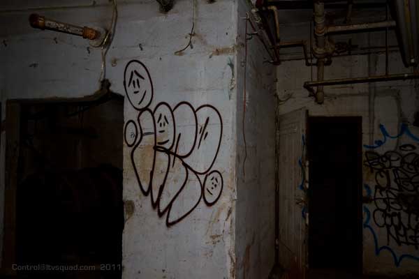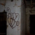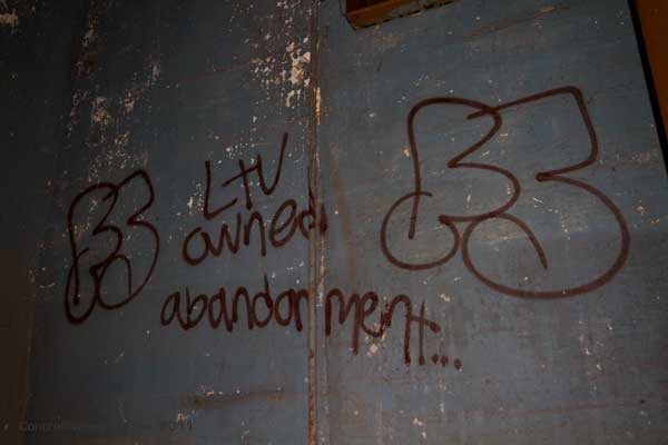 The third floor ironically is much more interesting and significantly less disgusting. It’s up here that we found some interesting old files, rare graffiti, and piles – not so much of clothing as what seemed like homeless person bits. Useless crap. Chairs, bow ties, toys, and yes, the occasional hole in the floor.