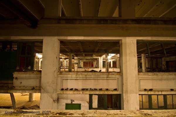 Here the floors are bad. You can see the floorboards rotting through in some sections – small holes appear. The walls of the stairs are tin – one of those architectural elements you just don’t see anymore.