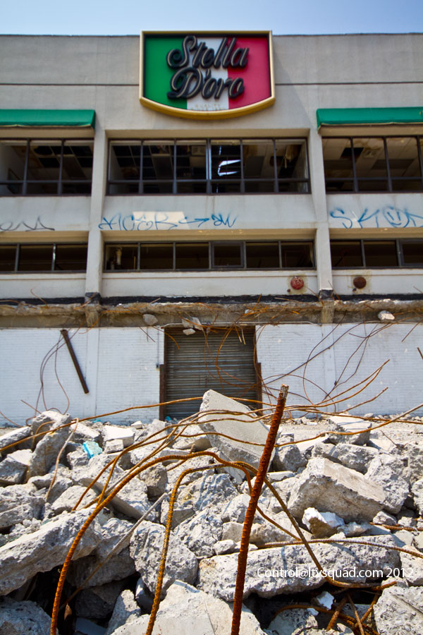 This three floor abandoned factory building dated back to the 1950s. It’s typical modernist styled exterior made it a rather plain looking addition to a neighborhood full of similar abandoned factory buildings. Over the years it served many companies, before being bought in 2011 for 5 million dollars. That’s a lot of cash for stout factory with no expansion possibilities, so demolition to make way for yet another condo building was definitely coming next.
