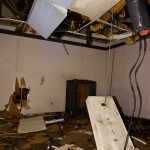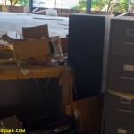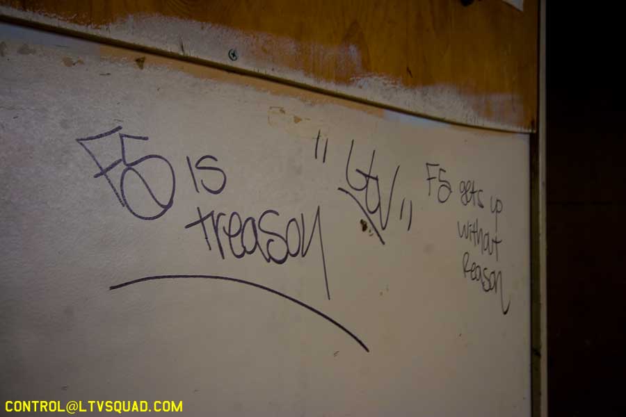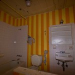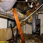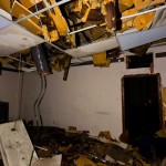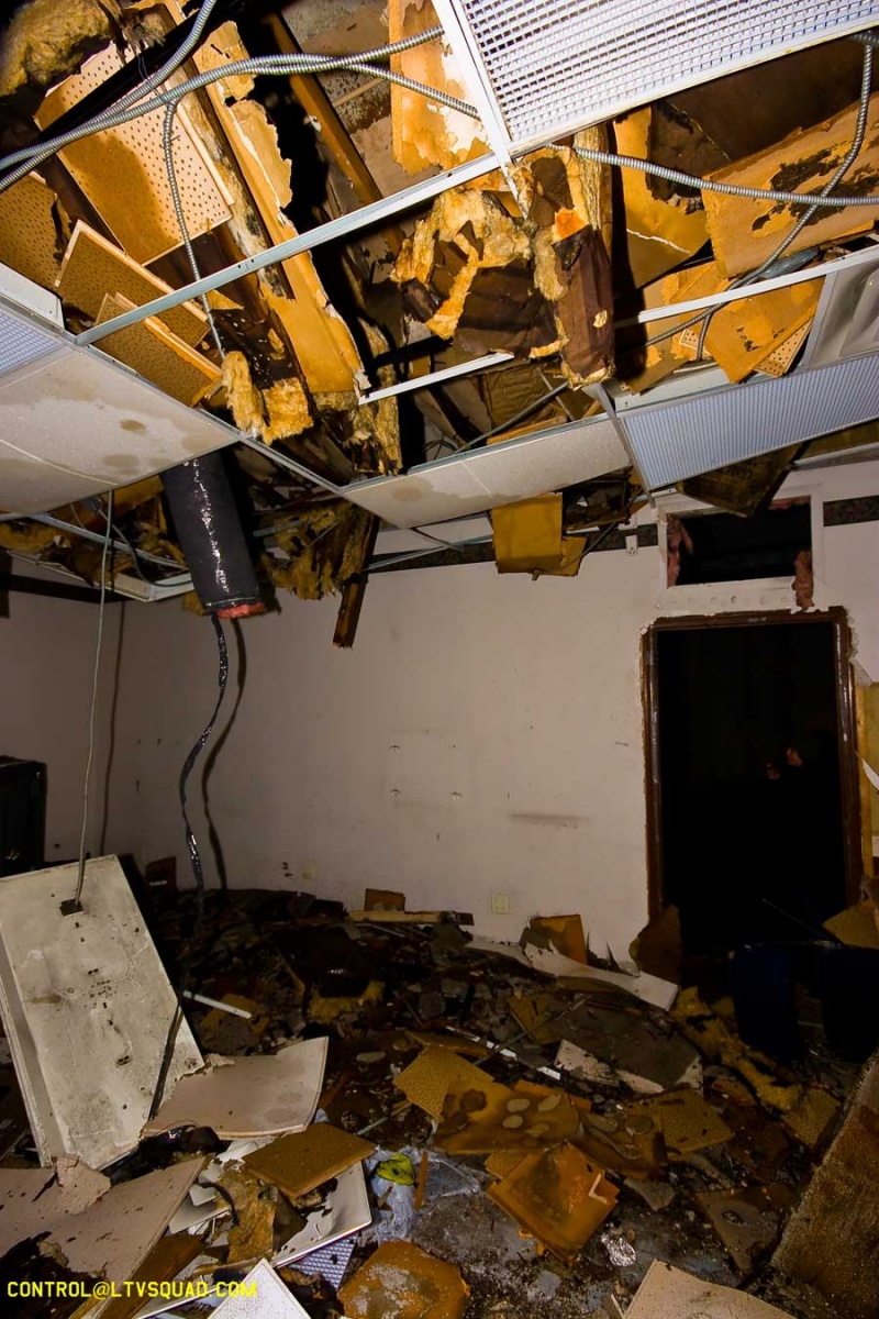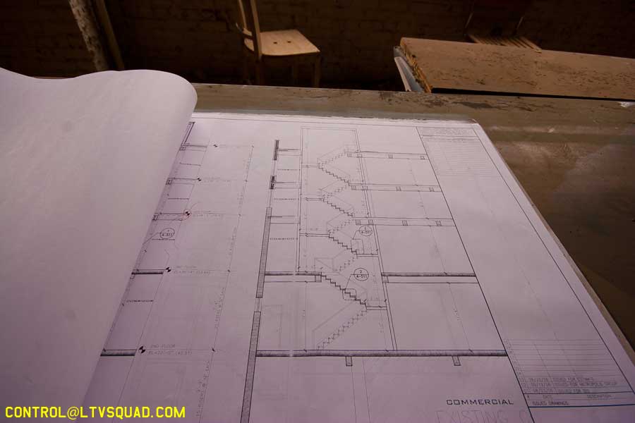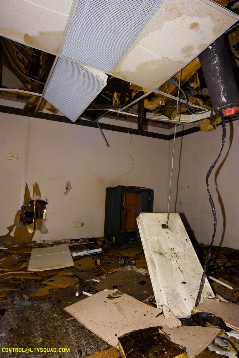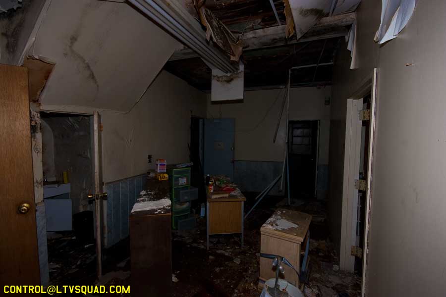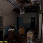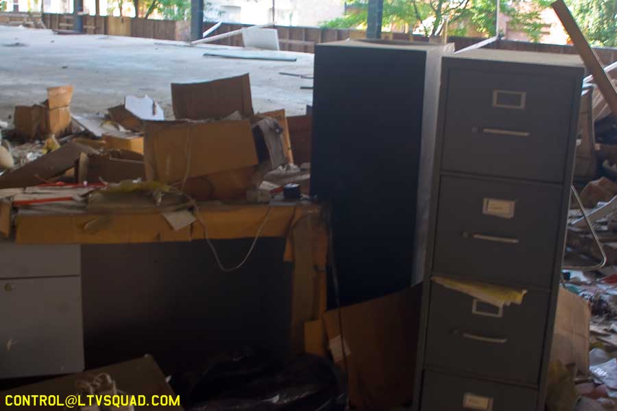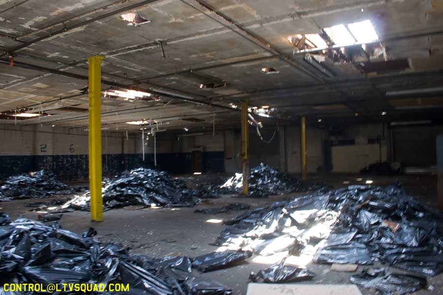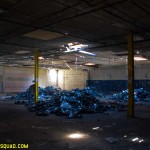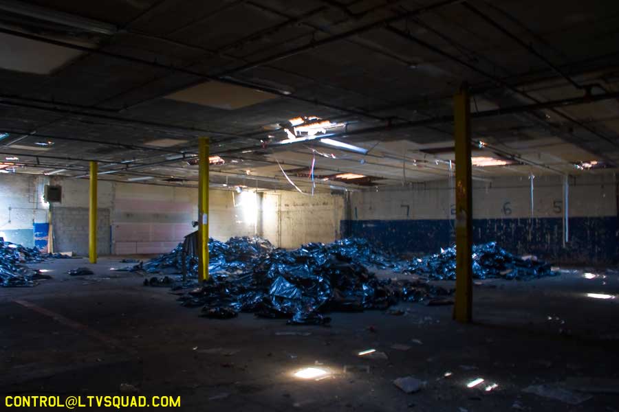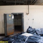 The asbestos abatement work is in full swing, and the trash bags full of the stuff are everywhere in the first section of the building we enter. The complex is really split into 3 practically interconnected buildings. To get to the other two from here, you have to go through the rat-maze area where workers change from their asbestos outfits into normal clothes. This decon area is set up so workers have to shower on the way out. There are no other doors. Everything is sealed up. I’ve seen abatement sites before but nothing this elaborate.