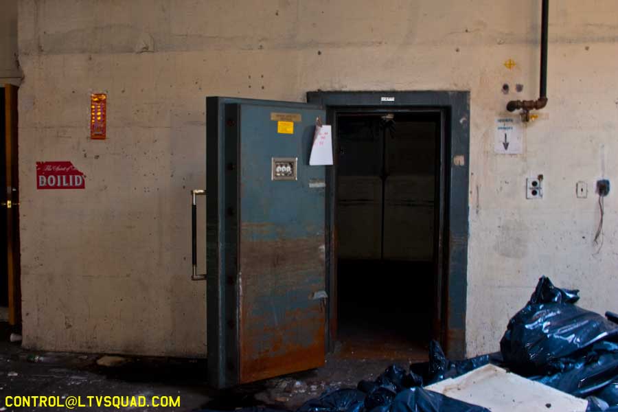 Turns out the place must have been used by some armoured car company at some point, as there was a big empty vault and signs to suggestion that cash from banks and betting operations came in here…