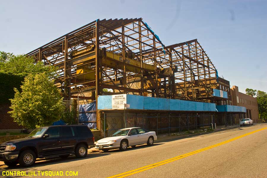 This building was originally constructed as the Lewis Steel Products factory in the late 1930s. After Lewis Steel moved out, it became the S & S Corrugated Box Machine factory. S & S made “Machinery for making corrugated paper, paper boxes, and machinery for combining, treating, fabricating, cutting and slotting” of all varieties of such paper. S & S also had a sordid history with the neighborhood, and after they went out of business, this factory building became artist studios and a lampshade outlet.In 2007 plans were made to convert it into high priced loft apartments. The building would be rebranded as the ‘Steelworks Lofts”. From 2007 to 2011 ownership of this building changed hands several times, with each group of owners having slightly different plans for it. As of this writing (June, 2013) the building is actively being converted into apartments again.