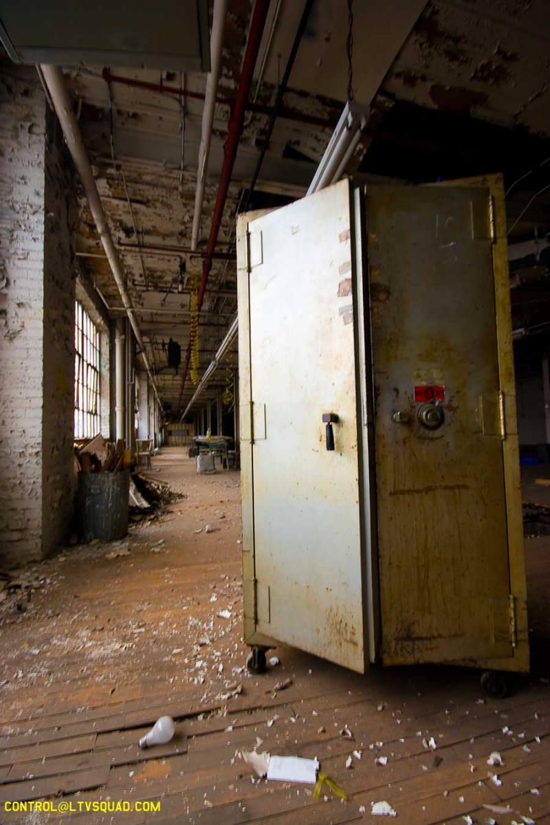 Today, (June 2013) the entire neighborhood is better known for trendy loft apartments and stores than manufacturing. This building remains exactly as it was when we explored it in 2007: a large empty completely abandoned shell of a building. It is rather amazing that it has been allowed to sit in this condition for so long. The exterior walls were used as a legal graffiti canvas in the early 2000s. Whatever becomes of it, it most certainly will never be a factory again.