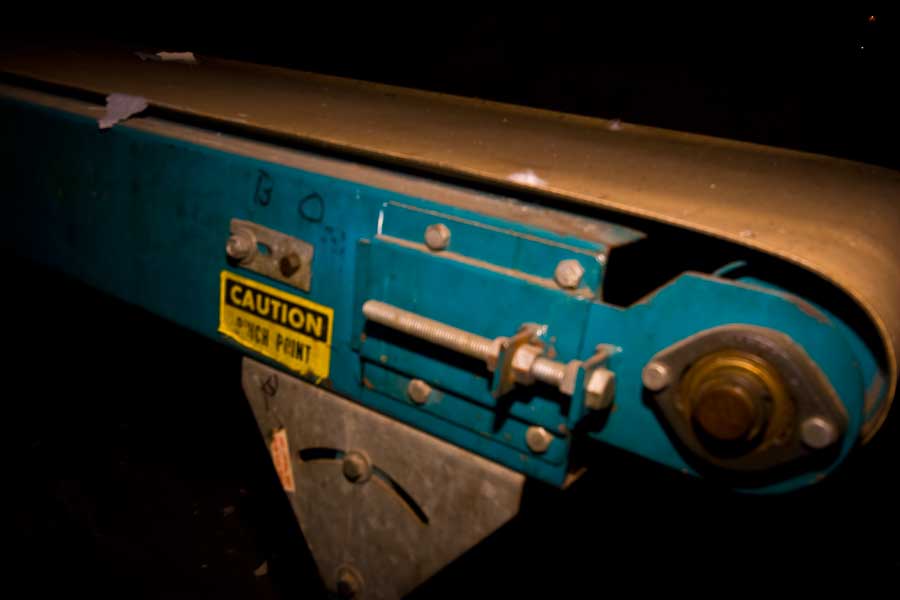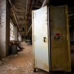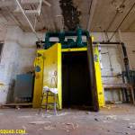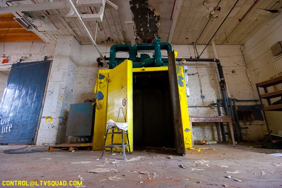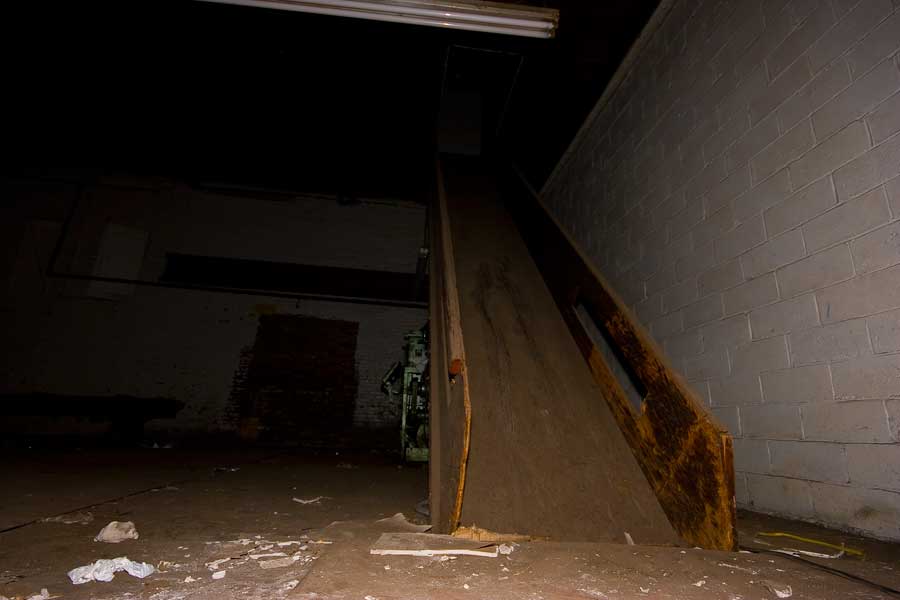 By chance we drive down an industrial street checking on an abandonment/development site we did last year. Directly across the street sits another large factory building that has no lights on. A closer look reveals a few windows broken out, and the roll down gates on the truck bays are not looking too healthy. Sure enough there’s a way in, and in we go.