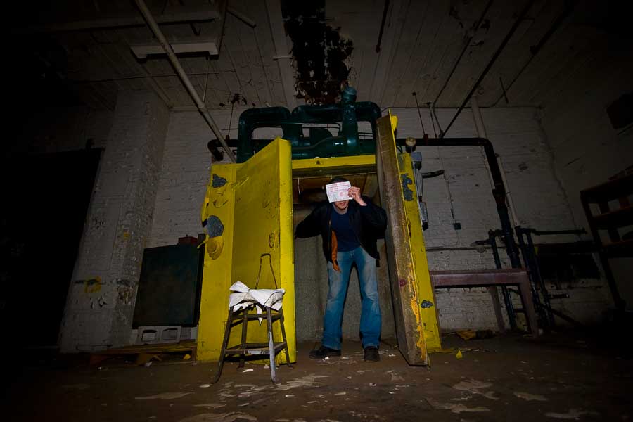 Upstairs was a lounge – perhaps an illegal bar? as well as various artist studio spaces. I had to stop and goof off a little at the one photographers studio that was left behind.