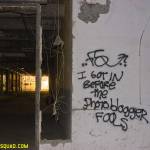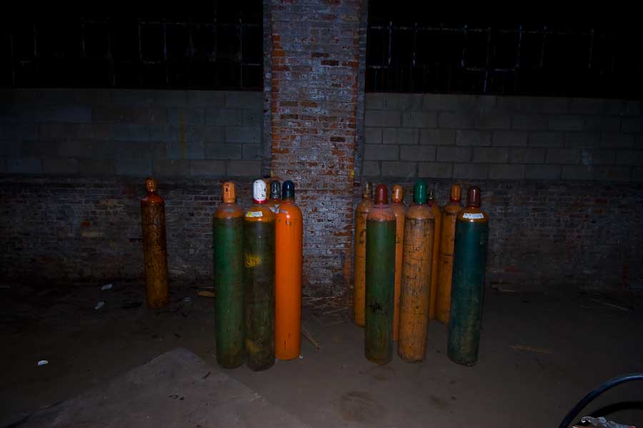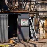 Me and S head out again looking for trouble. The target of our trip this evening is a large industrial site to maybe be disclosed later. For now I’ll keep it quiet though, in keeping with the grand tradition. Those that know, will, those that don’t, can wait – just like your mom on the corner in her finest short stained dress.Oh but I digress. Let’s cut to the chase, into the fence, and through the doors – straight into the belly of this asbestos laden beast. The air is thick with the stuff. Far thicker than I’ve smelt it in years. Kings Park steam tunnels smell like a spring day compared to this place. That doesn’t much stop us from doing what needs to be done, and what needs to be done immediately – as this building is going to be wiped from the face of this planet within weeks.