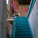 So I’m driving down this street when we realize all of the the buildings on it are about to be boarded up… which is typical really. I drove by here last weekend and there were no boards. Hell, there was a roll down gate a little ways up that we tried to slide open only to find another gate behind it… and here we are a week later with sure signs of impending demo/redevelopment.So we park and start shooting the block. A quick look at one of the doors shows it’s as open as your mom on prom night, and the hallway and interior doors look inviting, so in we go…