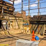 The rest of the building area is all very huge, as expected. It takes a few hours to see everything. But the third building section is already coming down. Huge holes in the walls and ceiling testify this fact. Bobcats on the 6th floor balcony do as well.