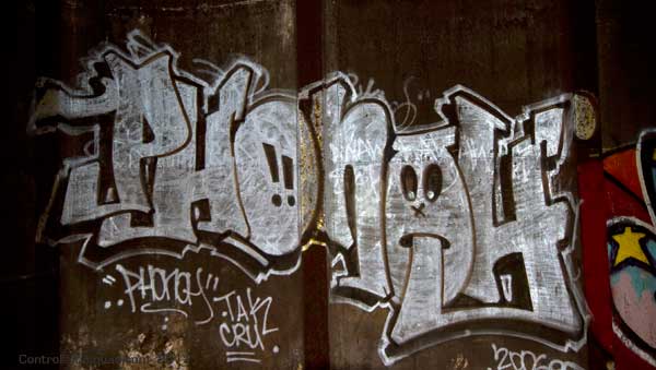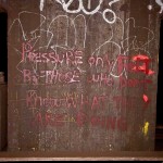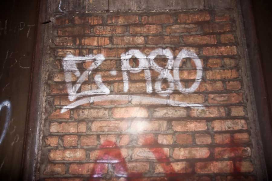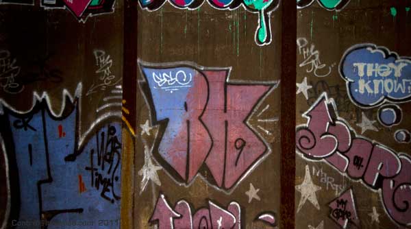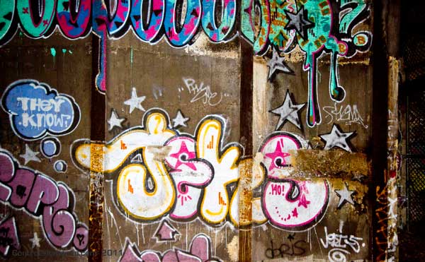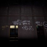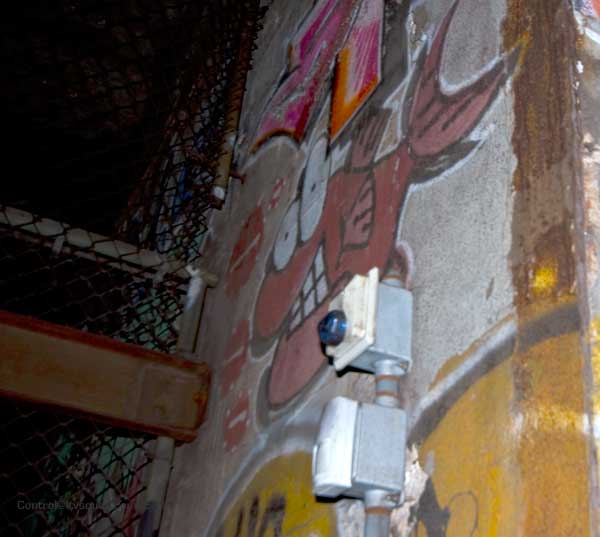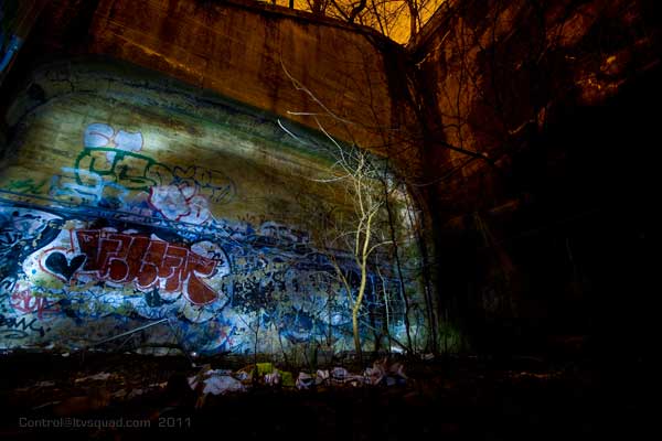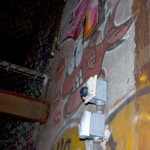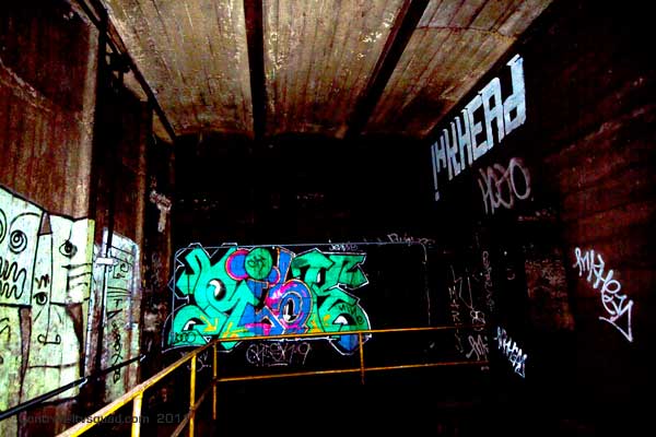 Click Click Click. Flash Flash Flash. There’s no available light here. You don’t come here to take artsy photos. You do however come here to take photos of art – which it seems is exactly what they don’t want you to get to see. This place has a lot of it – left over relics from when this vent shaft was a hangout spot for anyone with the brass balls to come down here. The best stuff is now behind a fence, that is strangely well mended, and running from floor to ceiling no less. Talk about obessive security.