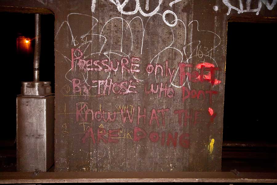 What, too much? Please. This is a humid dark wet tunnel, so sexual commentary isn’t just for fun – it’s downright required. Besides, a train could roll up on your ass in seconds down here, flashing your life before your mere mortal eyes.