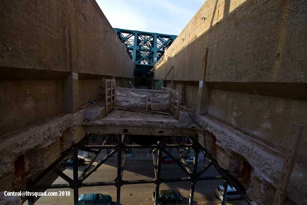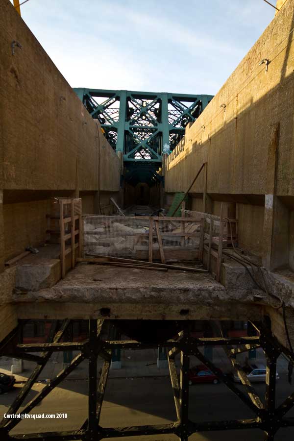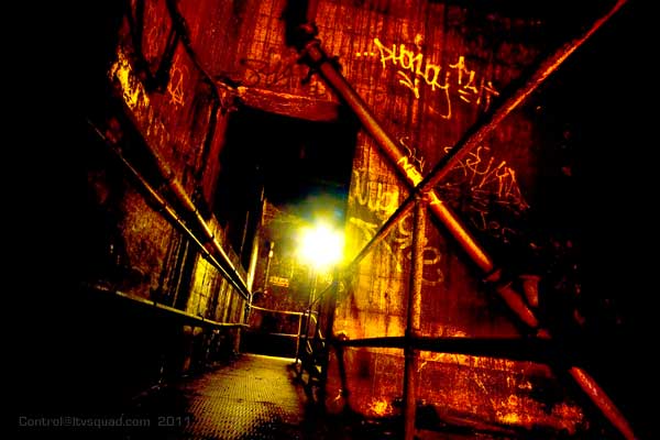 And you, if you’re smart, you know. You know all these sensors must mean there’s something around here that they’re positively obsessed about keeping people like you from getting to see. So you run though the stairs, peering into nooks as you go, and stepping carefully and nerve-rackingly over the dilapidated, collapse-tastic see through catwalks which are perfect for blowing large gusts of wind upward as trains rip buy below at upwards of 60mph.
